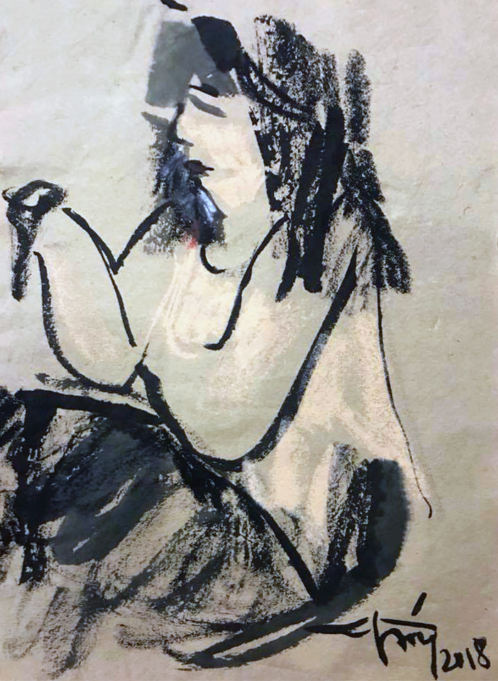 | Nguyễn Viết Thắng Thiếu nữ - Mực nho giấy dó (30/6/2018) |